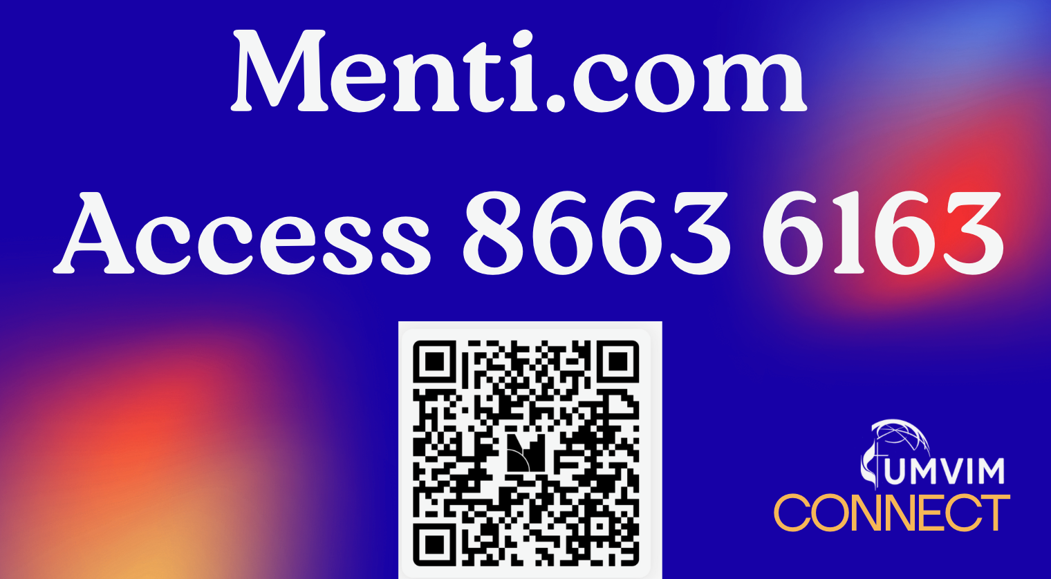 Please use this QR code for access to Mentimeter, which will be used for instant attendee feedback during larger sessions.